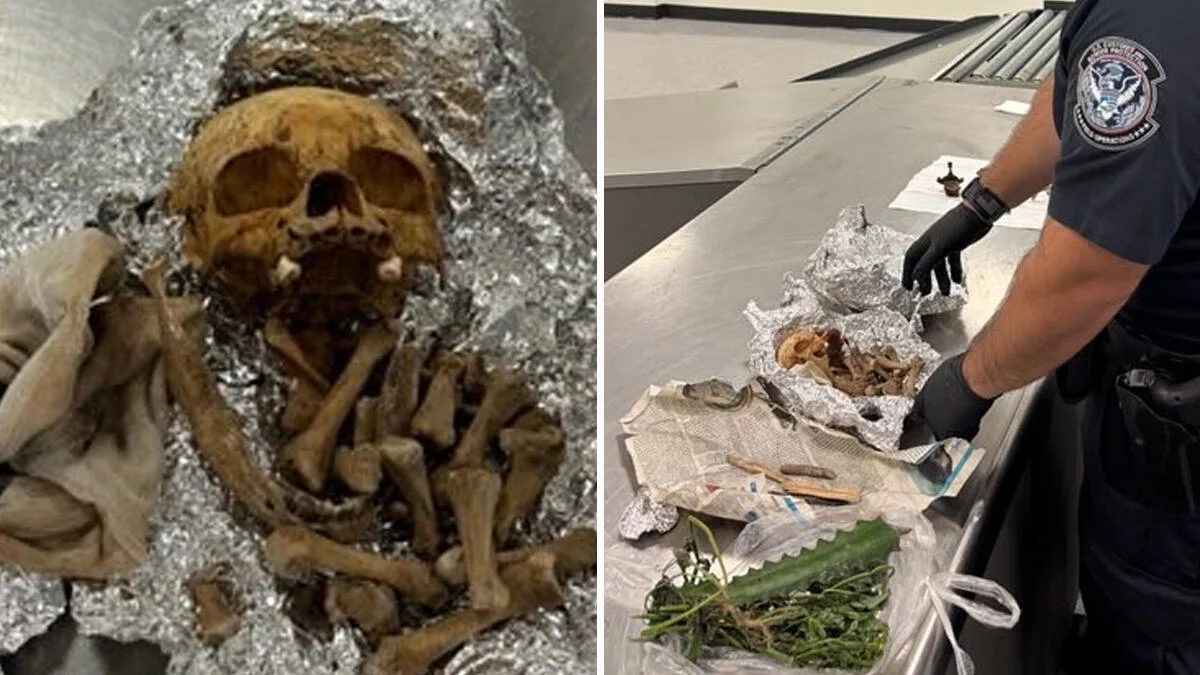 Tampa International Airport, ফ্লোরিডা-তে একটি সাধারণ লাগেজ পরীক্ষা চলাকালীন বিমানে চেকপয়েন্টে U.S. Customs and Border Protection (CBP) কর্মকর্তারা একটি ফয়েল-মুড়ো ডুাফল ব্যাগে অংশ-খানি মানুষের হাড় এবং একটি খুলির অংশ খুঁজে পান। যাত্রী প্রথমে ঘোষণা দিয়েছিলেন শুধু ১০টি সিগারেট আছে, কিন্তু তল্লাশিতে একাধিক নিষিদ্ধ উদ্ভিজ্জ বস্তু, ঘোরাফেরা করা সিগারেট ও অবৈধ উদ্ভিদসহ এই অবশিষ্টাংশ ধরা পড়ে। যাত্রীর দাবি, এই খুলি ও হাড়গুলো ‘রীতি (rituals)’ অনুসারে ব্যবহার করা হবে; তবে বিস্তারিত কোন রীতি, কী উদ্দেশ্যে বা কীভাবে সংগ্রহ করা হয়েছে সেই বিষয়গুলো স্পষ্ট হয়নি। নিরাপত্তার দৃষ্টিতে এবং জনস্বাস্থ্য ঝুঁকি হ্রাসের কারণে CBP কর্মকর্তারা ওই সমস্ত অবশিষ্টাংশ বাজেয়াপ্ত করেন এবং ধ্বংস করেন। এই ঘটনা ১৮ সেপ্টেম্বর, ২০২৫ তারিখে ঘটে বলে জানানো হয়েছে।